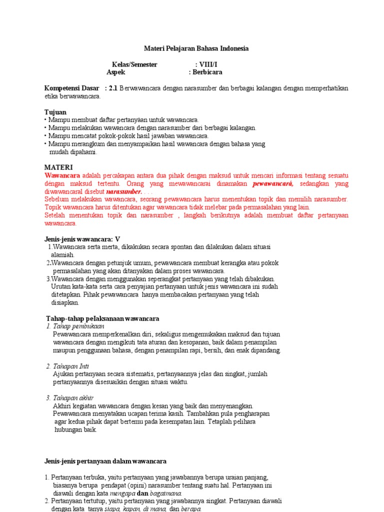 Bahan Ajar Materi Pelajaran Bahasa Indonesia Pdf